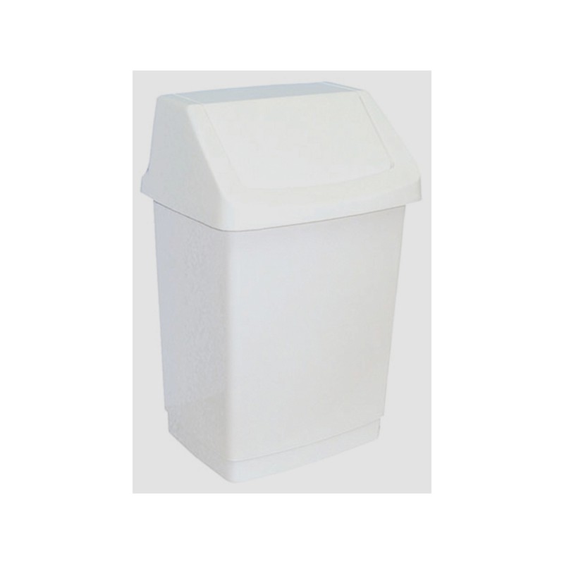 Odpadkový koš z odolného plastu s odklápěcím víkem, vhodný pro jednorázové sáčky na odpadky o objemu 15 l. Praktické řešení pro domácnost, kancelář i veřejné prostory. 25x46x24 cm.