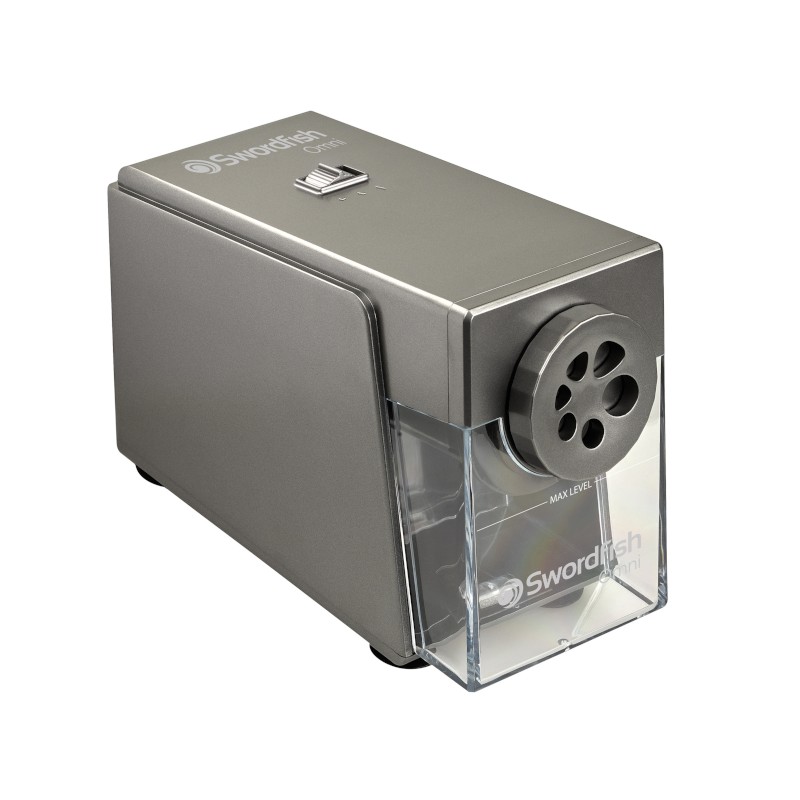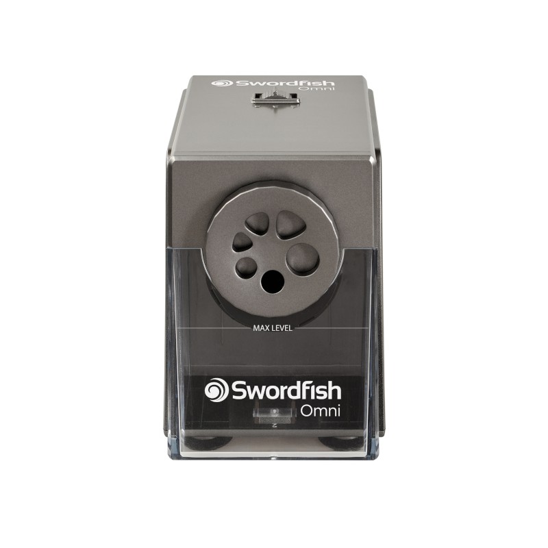 Profesionální elektrické ořezávátko do školy i kanceláře. Elektrické ořezávátko Swordfish Omni bylo navržené pro každodenní použití v prostředí, kde se ostří často a bez kompromisů. Díky pevné konstrukci, rychlému ostření a spirálové fréze je ideální volbou pro školy, školky, výtvarné učebny i kanceláře. Toto elektrické ořezávátko na silné tužky zvládne až 6 různých průměrů: standardní tužky 6, 7, 8 mm a silné pastelky a grafitové tužky 9–12 mm. Automatické zastavení při doostření – žádné přebrušování. Možnost tří druhů ostrosti. Bezpečnostní vypnutí při vyjmutí zásobníku, tepelná ochrana proti přehřátí. Velká průhledná nádoba na hobliny pro snadnou kontrolu