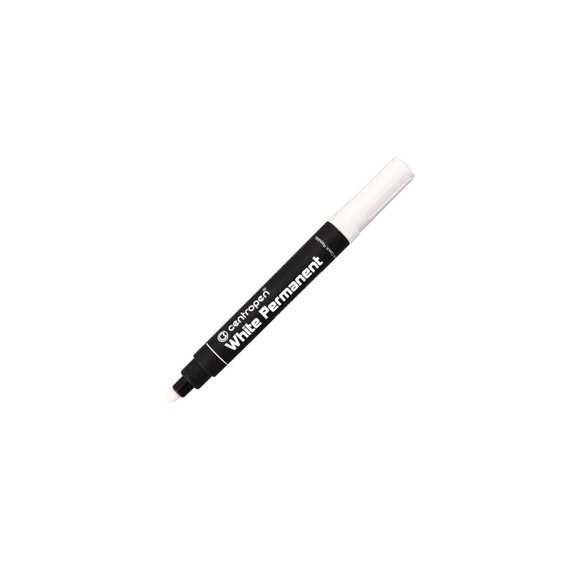 Univerzální bílý značkovač, píše na většinu povrchů, po zaschnutí odolá za sucha otěru na porézních površích permanentní, světlostálý, vodní báze. Válcový hrot, šířka stopy 2,5 mm.